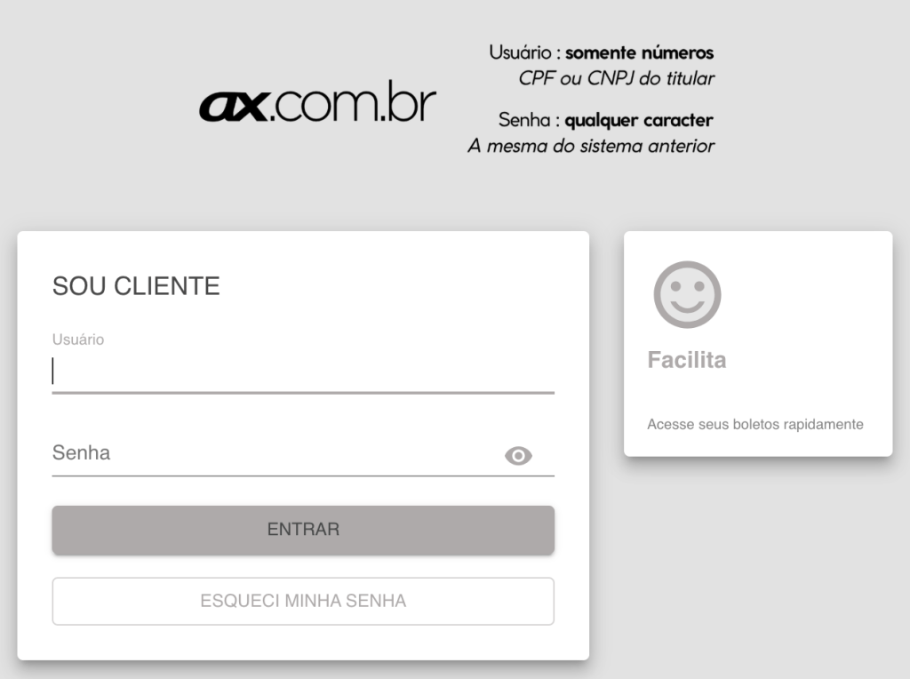 Redireciona o Cliente para esta página, onde são fornecidas as informações básicas para o primeiro acesso ao nosso portal, assim como ajuda no relacionamento com a empresa, de forma simples e fácil.